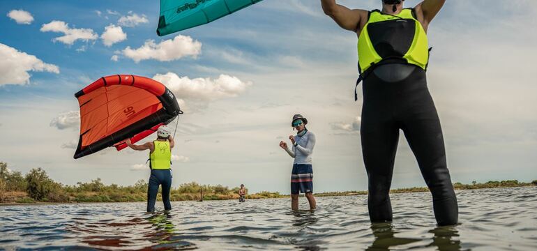 Les cours de wingfoil et windsurf sont ouverts à 4 personnes au maximum, afin de privilégier la qualité de la pédagogie et de favoriser l’apprentissage