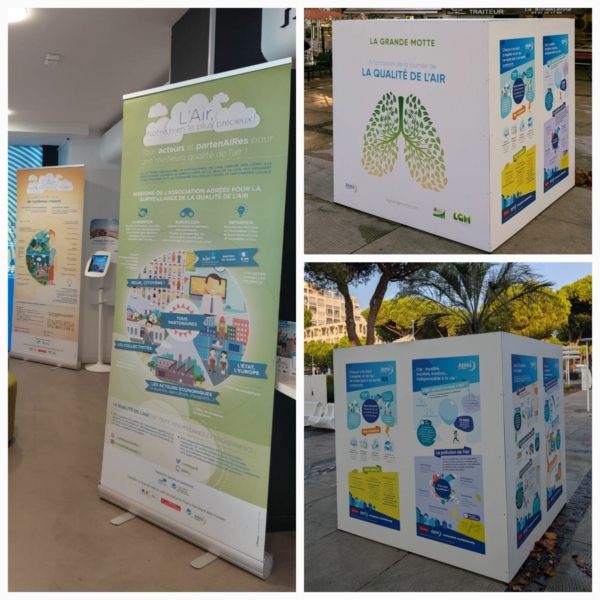 Depuis 2015, le 14 octobre est la Journée Nationale de la Qualité de l’Air, initiée par le Ministère de l’Environnement et de la Transition écologique. À cette occasion, la Ville de La Grande Motte s’engage à sensibiliser le public à cet enjeu majeur pour la santé et l’environnement. Une exposition dédiée à la qualité de l’air a été installée en partenariat avec Atmo Occitanie au niveau du rond-point de l’avenue de l’Europe, ainsi que des kakémonos au sein de l’Office de Tourisme. Cette exposition restera en place pendant un mois.