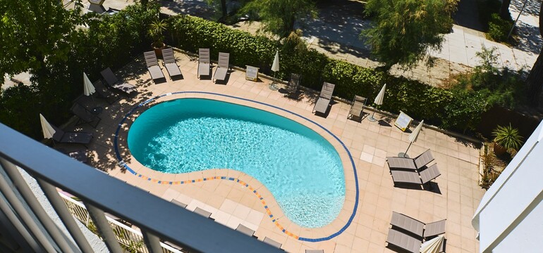Hôtel idéalement situé, au centre de le station,à proximité de nombreux restaurants, à 5 min à pied de la plage , à 200 m du Palais des Congrès et du Pasino, L'hôtel est au fond d'une impasse, très au calme.Hôtel climatisé avec canal+, parking fermé, wifi, piscine.Profitez de nombreux tarifs promotionnels par téléphone ou sur notre site internet.