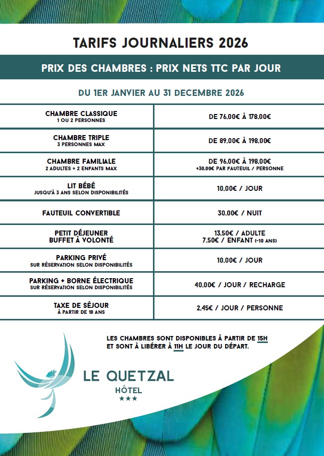 | Chambre triple | 89 € | 198 € | 89 € | 198 € | 89 € | 198 € |