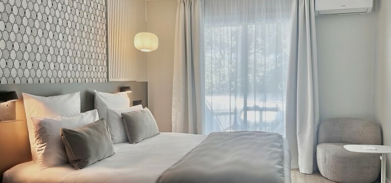 - Confort dans les chambres: Accès handicapés, Câble/ satellite, Climatisation, Mini-bar, Télévision ecran plat, Terrasse privative, Toilettes séparées, Wifi gratuit