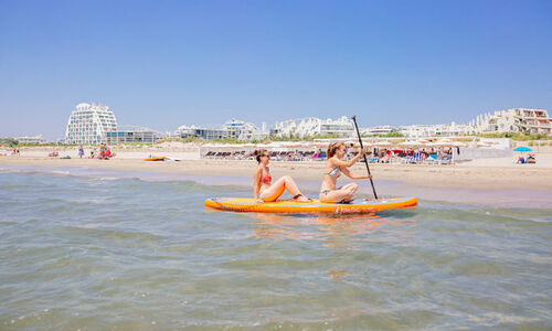 La plage du Couchant séduira les familles et les amoureux des loisirs nautiques. Vous bénéficiez de la proximité des commerces et restaurants des « Boutiques du Couchant ». Plus proche du port de plaisance, la plage vous offre tous les loisirs nautiques possibles : le Yacht Club propose de la location de matériels ainsi que des cours (voile, planche à voile, stand-up paddle, canoë kayak). Un espace délimité est dédié au kitesurf, lorsque la météo est favorable. Dans le port se trouve le départ pour des loisirs tels que la bouée tractée, le parachute ascensionnel, le jet ski, la location de bateaux avec ou sans permis, et des promenades découverte en mer.