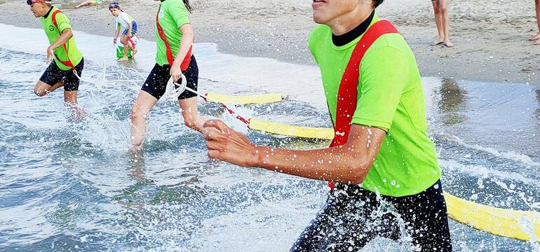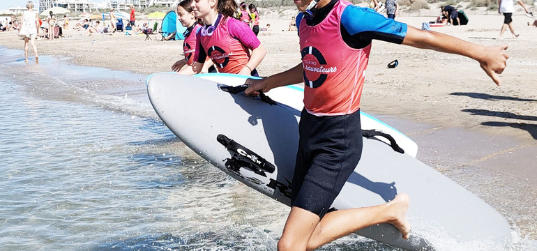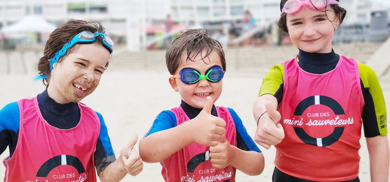 Le club de Plage sportif, ludique et citoyen. Au club des Mini Sauveteurs, nous proposons desinitiations au sauvetage, au secourisme, à la natation en mer, à la planche de sauvetage ainsi qu’une sensibilisation à l’écologie.