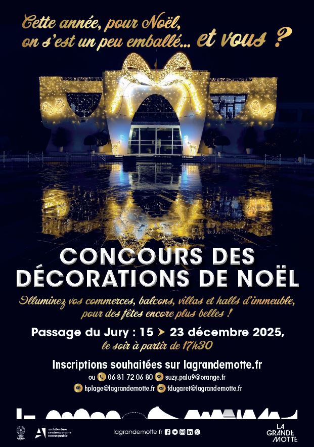 Illuminez vos commerces, balcons, villas et halls d'immeuble, pour des fêtes encore plus belles!Le lien pour s’inscrire est le suivant : https://www.lagrandemotte.fr/actualites/participez-au-concours-des-decorations-de-noel/
