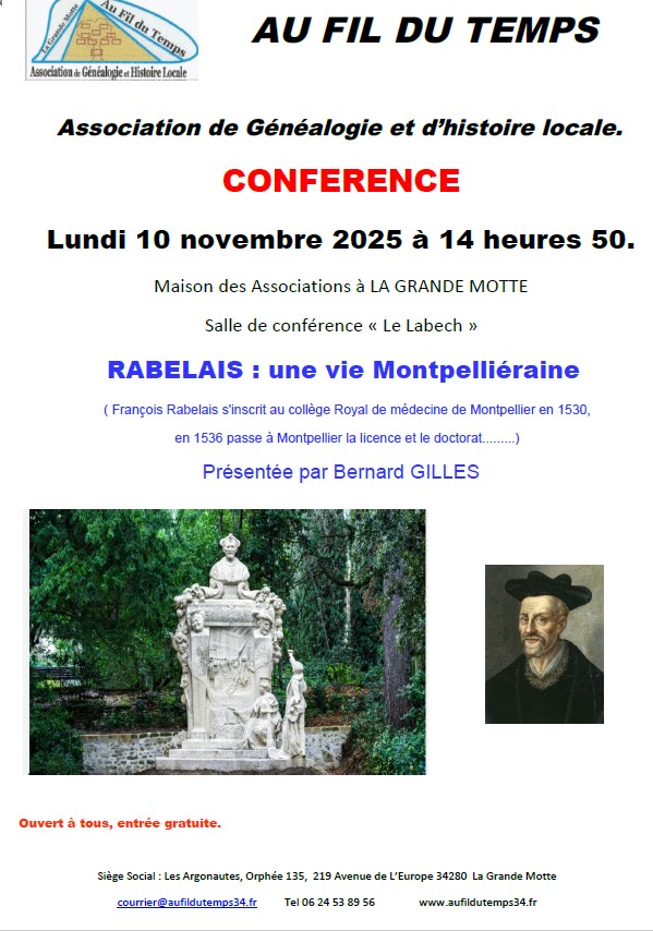 Conférence avec Au Fi du Temps : "Rabelais, une vie montpelliéraine"