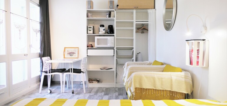 Au point Zéro à 8mn du centre-ville et plage à pieds, proche thalassothérapie, studio agréable et confortable pour 2 personnes au 1er étage d'une résidence calme avec parking privatif et WIFI. Balcon ensoleillé sud-ouest. Séjour lumineux, salle d'eau moderne. Linge de maison et toilette fournis. TV écran plat, HIFI, documentations. Cuisine toute équipée (lave-linge, micro-ondes, Tassimo, bouilloire, grille-pain),coin repas, fauteuils, Lit matelas 22 cm.Contact & Accès