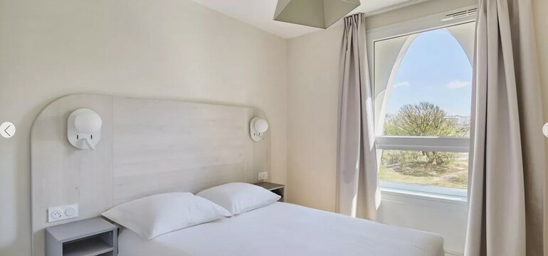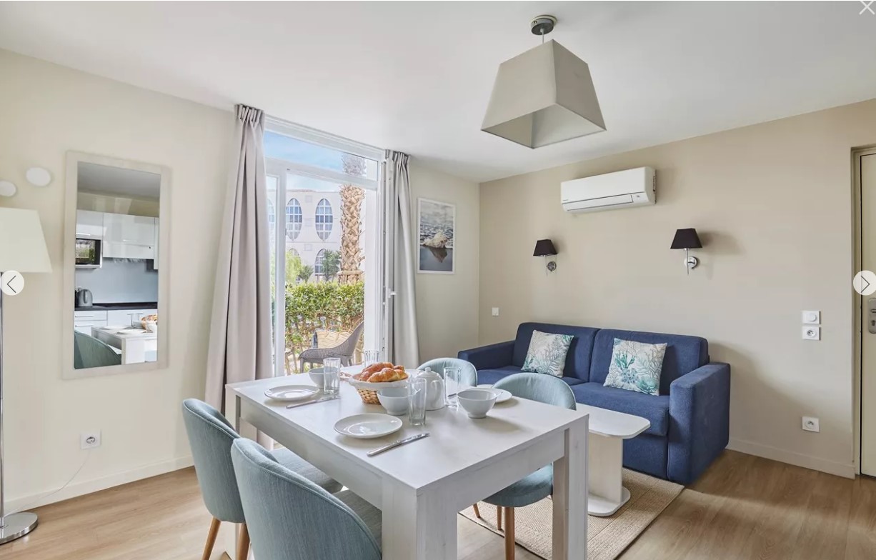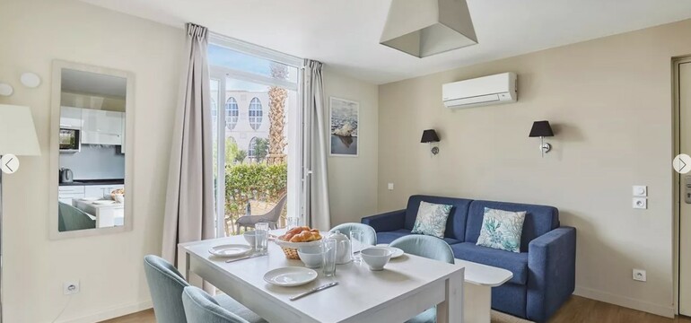 - Nous disposons de 5 appartements PMR en rez-de-chaussée. Ils sont adaptés avec douche à l'italienne, WC surélevés avec barre de maintien, siège de douche, largeur de porte adéquat, kitchenette adaptée. Ces appartements peuvent accueillir jusqu'à 5 personnes. La résidence est également aménagée avec des places de parking PMR (parking couvert en supplément et découvert gratuit).