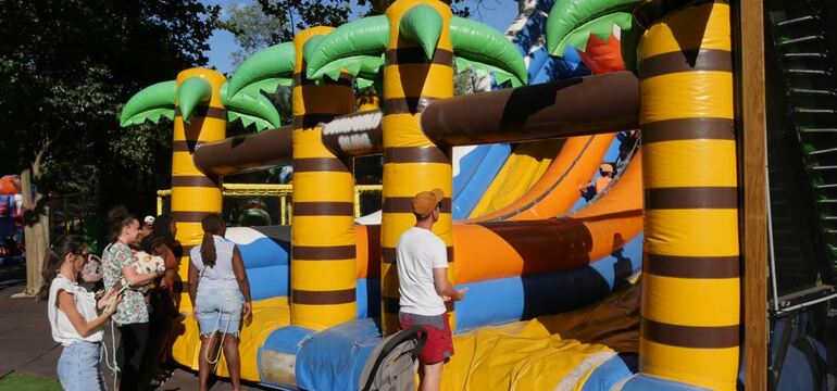 Jeux gonflables, manèges, toboggans et trampolines géants, Rivière Canadienne, Rollercoaster, espaces bébé, petite restauration et espace anniversaire.
