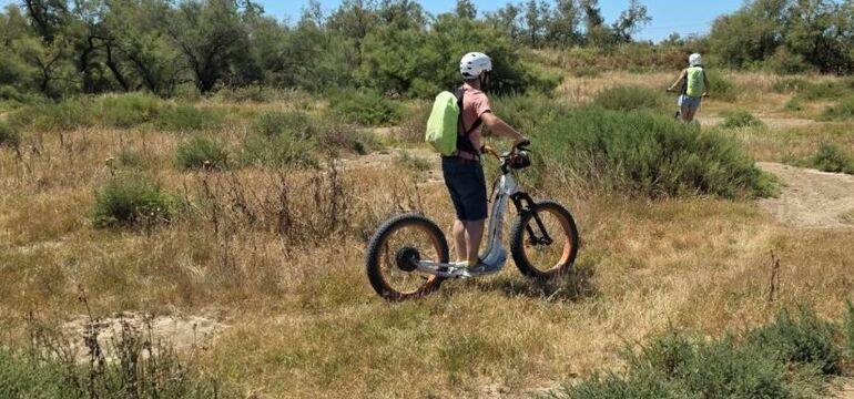 En famille, entre amis, venez profiter d’une visite guidée nature. Au guidon de votre trottinette électrique tout terrain partez à la découverte des paysages de Petite Camargue entre terre et mer.