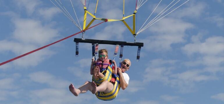 Découvrez Parascension et profitez d'une vue à 360° sous le ciel de La Grande Motte. Que vous soyez seul, en duo ou en trio, envolez-vous à 60 mètres de hauteur pour découvrir la région sous un angle différent et de garder des souvenirs inoubliables de votre voyage. Une expérience sensationnelle pour les amateurs d'aventure et de vues panoramiques. Ne manquez pas cette occasion unique de découvrir la beauté de La Grande Motte depuis les airs !